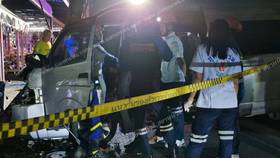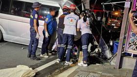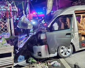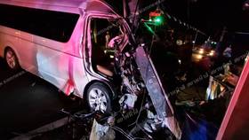 รถตู้เสียหลักชนเสาไฟฟ้า คนขับโดนไฟชอร์ตดับคาพวงมาลัย