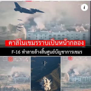 เผยนาทีที่เครื่องบินรบ F-16 ของไทยเปิดปฏิบัติการทิ้งระเบิดถล่มทำลายบ่อนคาสิโนกัมพูชาฝั่งตรงข้ามช่องอานม้าที่ใช้ตั้งเป็นศูนย์บัญชาการ จนเกิดกลุ่มควันพวยพุ่งปกคลุมพื้นที่จากภาพที่ปรากฏบนจอมอนิเตอร์ทางอากาศ