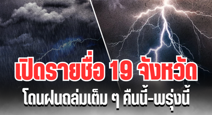 ประกาศเเล้ว! กรมอุตุฯ เปิดรายชื่อ 19 จังหวัด โดนฝนถล่มเต็ม ๆ คืนนี้-พรุ่งนี้