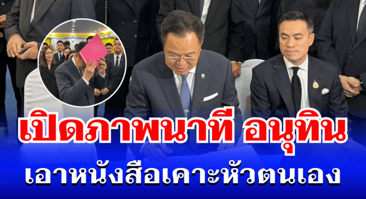ชื่นมื่น! เปิดภาพนาที อนุทิน เอาหนังสือเคาะหัวตนเอง